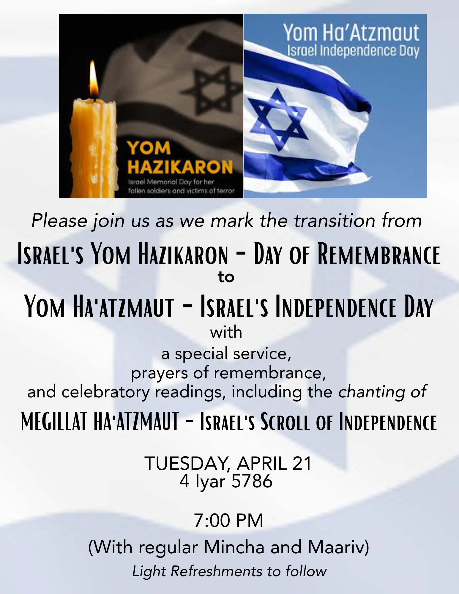 Marking the Transition from Yom Hazikaron to Yom Ha’Atzmaut
