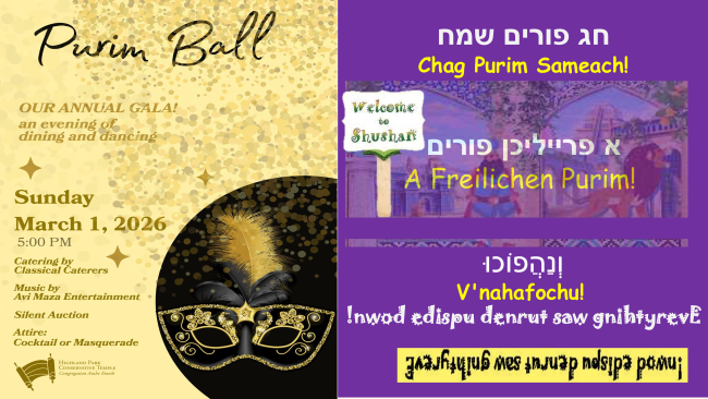 Thank you to all those who attended our Purim Ball, placed an ad, solicited for ads or a Silent Auction gift, donated a Silent Auction gift, purchased a Silent Auction gift, made calls for the Directory & Jewels – and placed a jewel or directory listing . . . you all contributed to the great fun and financial success of the evening!